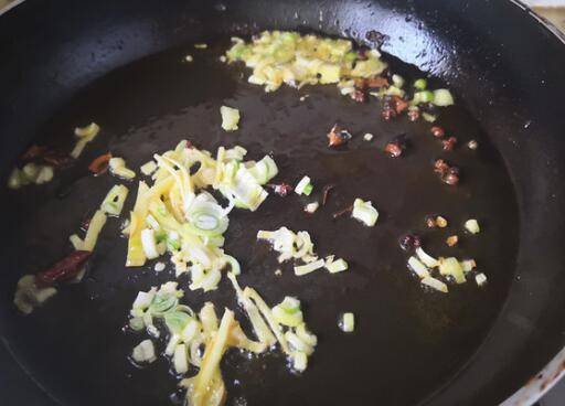 4、再重新切葱末和姜丝,锅里放入适量的食用油,油热后把葱末和姜丝放进去爆炒。