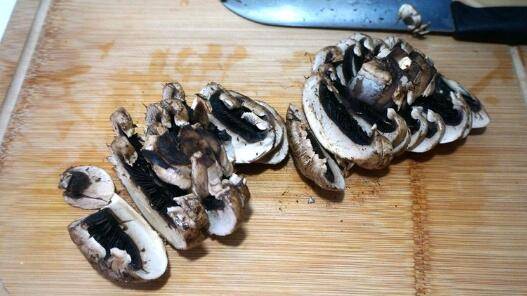 2、牛肝菌冲洗干净,切成3毫米的大片。