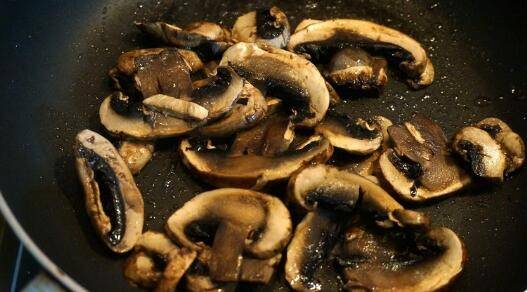 5、炒锅中倒少许油,将牛肝菌入锅中煸炒几下。