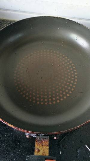 6、油烧热后将面倒入平底锅炸至两面金黄。