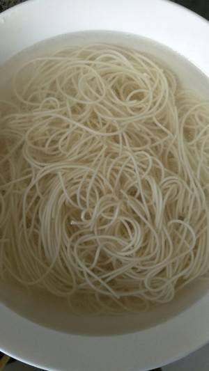 3、烧开了后把挂面捞出,放冷水里过一下。