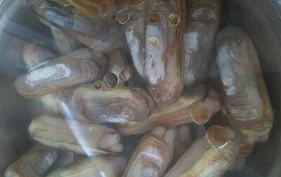 蛏子(学名:Sinonovacula constricta(Lamarck)),帘蛤目竹蛏科软体动物。蛏子贝壳为长方形而两端纯圆,长约4-8.5厘米,壳顶靠近前方,生长线显著,两片贝壳相等,壳面为黄绿色,常有磨损破落而呈白色。其栖息于河口附近和有少量淡水注入的浅海内湾的软泥沙中,广布于中国南北沿海。