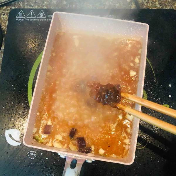 5、加水、酱油、盐巴、鸡精、少许豆瓣酱、料酒烧开。