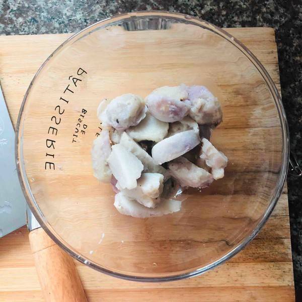 2、芋子洗净,放电饭煲里加水,煮熟。
