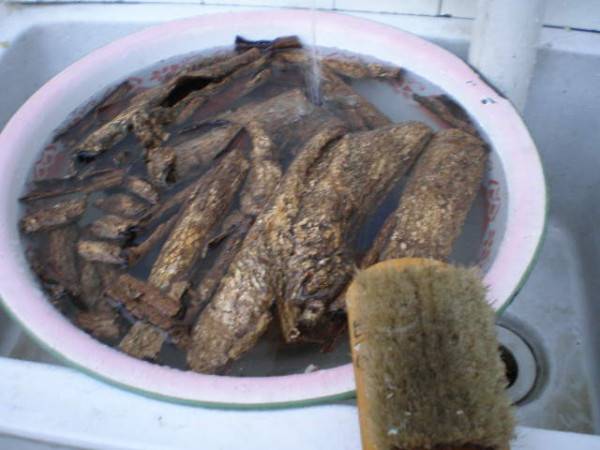 2、先用食盐加适量开水溶化,取杜仲块或丝条,使与盐水充分拌透吸收。