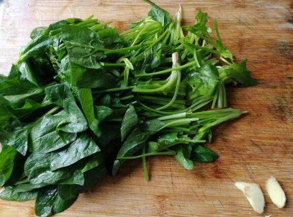 准备材料:菠菜1把、姜2片、盐1勺、玉米油20毫升、鸡精。