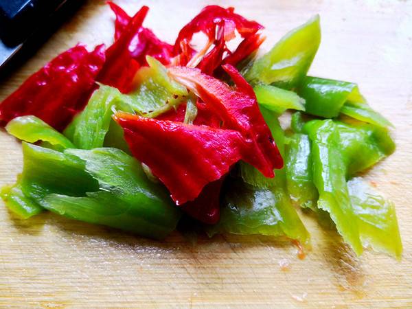 8、鸡块炖好后,大火收汁,将鸡块取出来,另起锅油热后先放辣椒翻炒出香味,再把鸡块倒入一起翻炒,加少许盐调味,出锅即可。