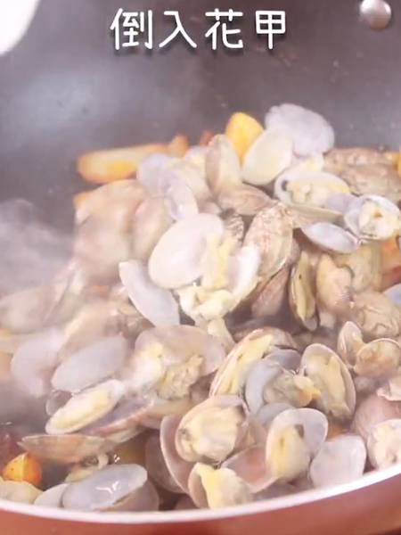 6、倒入花甲。