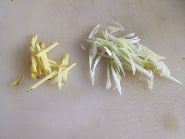 9、炒锅里加入适量的食用油,油热后先放入葱丝、姜丝爆香。
