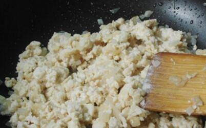最佳答案:洋葱切小方块,胡萝卜、香菇等切小碎丁,泡发好的黄豆煮熟待用。将肉泥推到锅的一边,放入豆瓣酱和豆豉。然后将肉泥和豆瓣酱,混炒均匀。放入香菇丁,胡萝卜碎和葱白碎。加入适量清水,水没过食材即可。当汤汁还剩少部分时放入葱,翻炒均匀,再炖煮片刻即可。