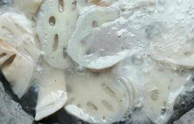 2、锅中烧水,煮沸后加入藕片焯水1分钟,捞出过凉水。