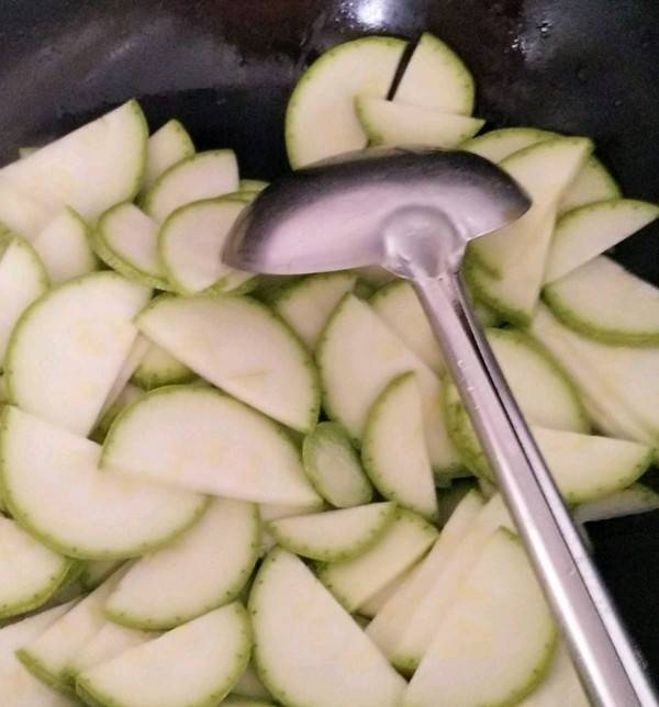 4、倒入西葫芦。