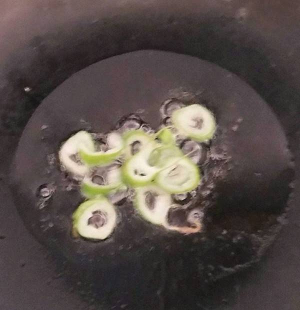 3、锅里放油炒葱香。