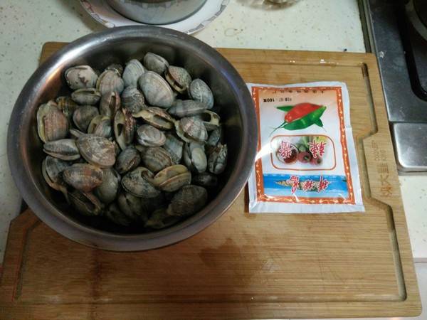 1、准备材料:蚬子1斤、辣酱1袋、色拉油适量。