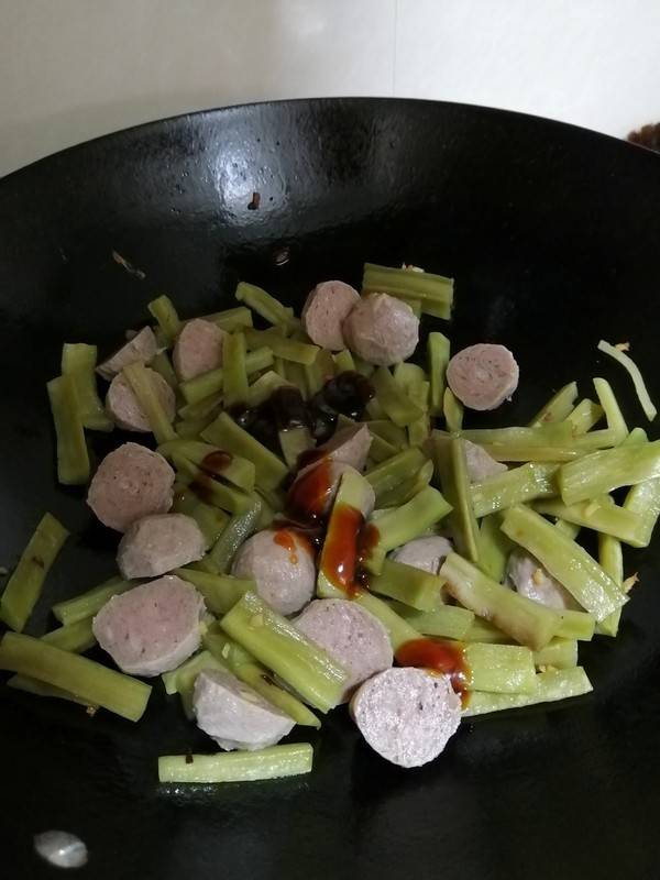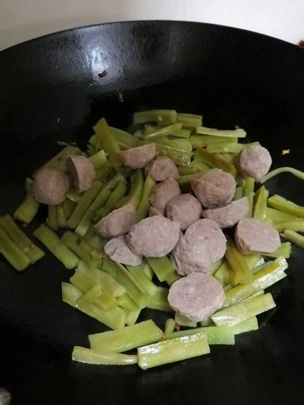 8、加入蚝油,炒至牛肉丸熟透。