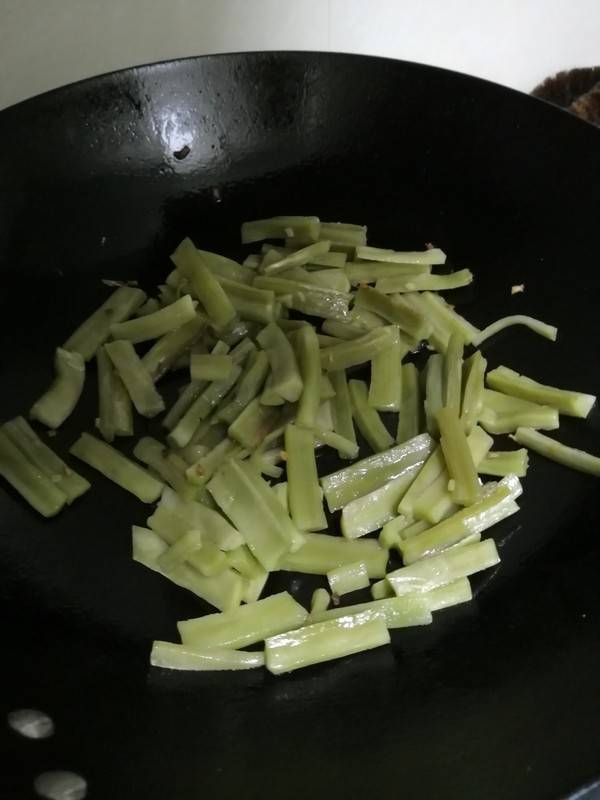6、加入盐,炒1~2分钟。
