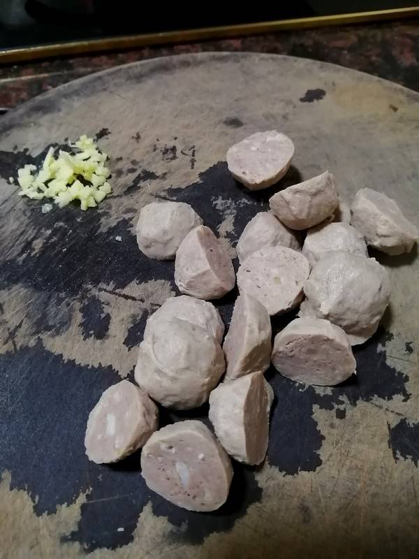 7、加入牛肉丸。