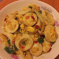 最佳答案:准备材料:熟鸡蛋6个、姜葱蒜若干、剁椒一勺、青椒2个。每个熟鸡蛋切成四五片。在平底锅里放少量油,烧热后把鸡蛋铺好,两面煎至金黄。另起一炒锅,放油,油热后放入姜葱蒜,爆出香味。然后放青椒,翻炒一下,加入一勺剁椒。青椒熟了后,倒入两面煎好的鸡蛋片,翻炒几下后放入盐、鸡精和酱油即可。