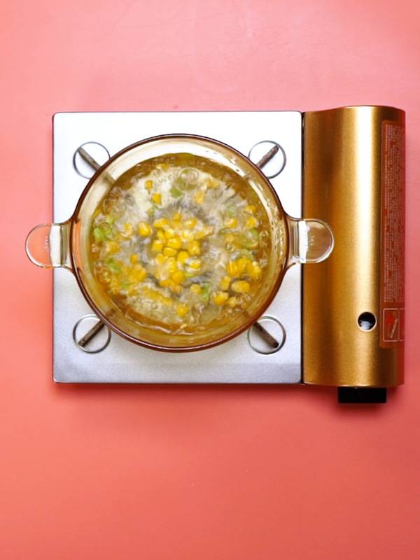 3、清水入锅,加入玉米粒、青豆,焯水10秒。