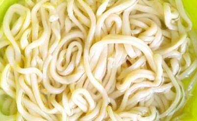 2、拉面切细条用手拉开,下入锅内沸水中至九分熟。