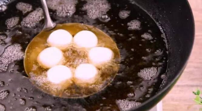 1、锅中倒入油,烧至六成热,下汤圆过油。