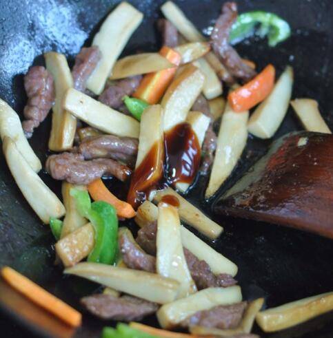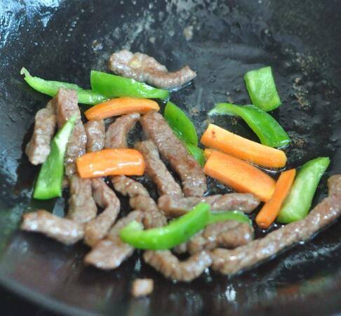 最佳答案:准备材料:牛排60克、杏鲍菇100克、胡萝卜10克、青椒10克、油6克、盐2克、淀粉8克、蚝油6克。牛排肉切成长条状,加入淀粉抓匀,杏鲍菇切成长条状。锅中倒入油,将杏鲍菇煸软,两面金黄捞出。放入牛排肉煸炒变色,放入胡萝卜段和青椒段,放入刚才煸软的杏鲍菇。加入盐、蚝油即可。