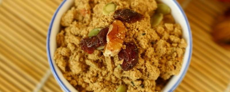 最佳答案:准备材料:面粉70克、小米粉40克、核桃15克、食用油3毫升、花生10克、芝麻10克、黑芝麻10克、白砂糖5克、清水适量。核桃切碎。锅中倒入食用油、花生、核桃、芝麻、黑芝麻,翻炒均匀。倒入面粉、小米粉,翻炒均匀后倒入白砂糖,小火炒至微黄。倒入清水,搅拌均匀即可。