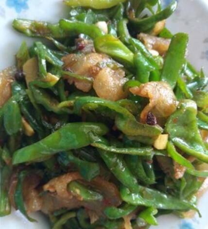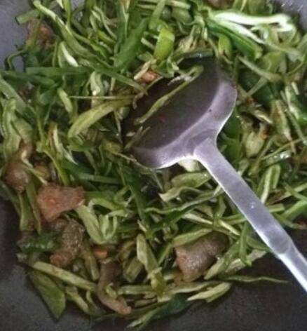 4、改中大火,下青椒丝翻炒至辣椒变软,加适量盐就可以出锅了。