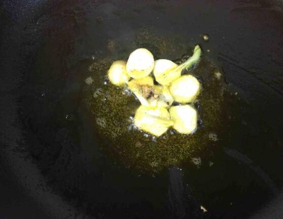 4、锅放油烧热,放蒜片,生抽,胡椒粉,姜粉炒出香味。