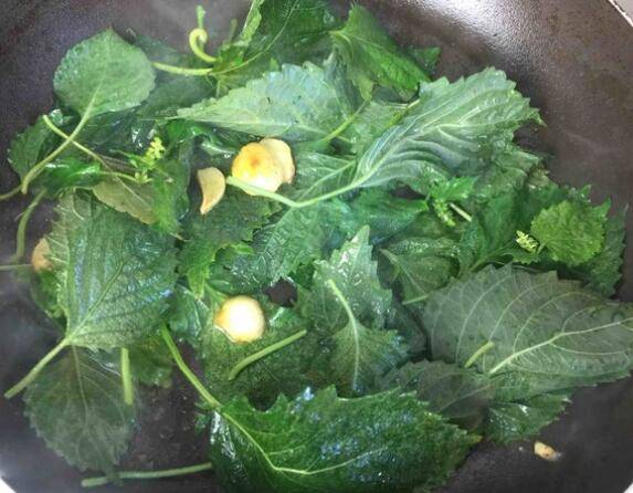 最佳答案:准备材料:鸡蛋一个、紫苏叶100克、花生油适量、盐少许、大蒜适量、胡椒粉适量、姜粉适量、生抽适量。紫苏叶洗干净,鸡蛋打散,大蒜去皮切片备用。锅放油烧热倒入鸡蛋液,煎熟成出备用。锅放油烧热,放蒜片,生抽,胡椒粉,姜粉炒出香味。放入紫苏叶,放入鸡蛋,盐,翻炒均匀,即可装盘食用。