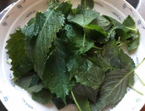 准备材料:鸡蛋一个、紫苏叶100克、花生油适量、盐少许、大蒜适量、胡椒粉适量、姜粉适量、生抽适量。