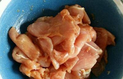 1、猪瘦肉切成薄片,放入碗中加盐、水淀粉、酱油、料酒拌匀,用筷子沿顺时针方向拌匀,放置几分钟,再加入1汤匙(15ml)的水,用筷子沿顺时针方向拌匀,让肉充分吸收水分,再覆盖保鲜膜放入冰箱中冷藏15分钟,在炒制前取出,再加入1茶匙(5ml)的水,用筷子沿顺时针方向拌匀,待用。
