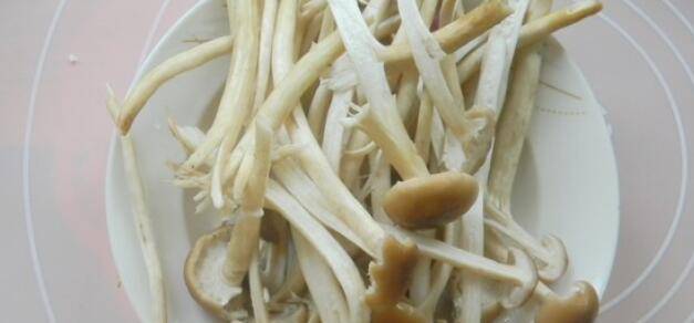 准备材料:茶树菇300克、青椒1根、剁红椒1茶匙、食盐1/2茶匙、香油1/2茶匙、植物油2汤匙。