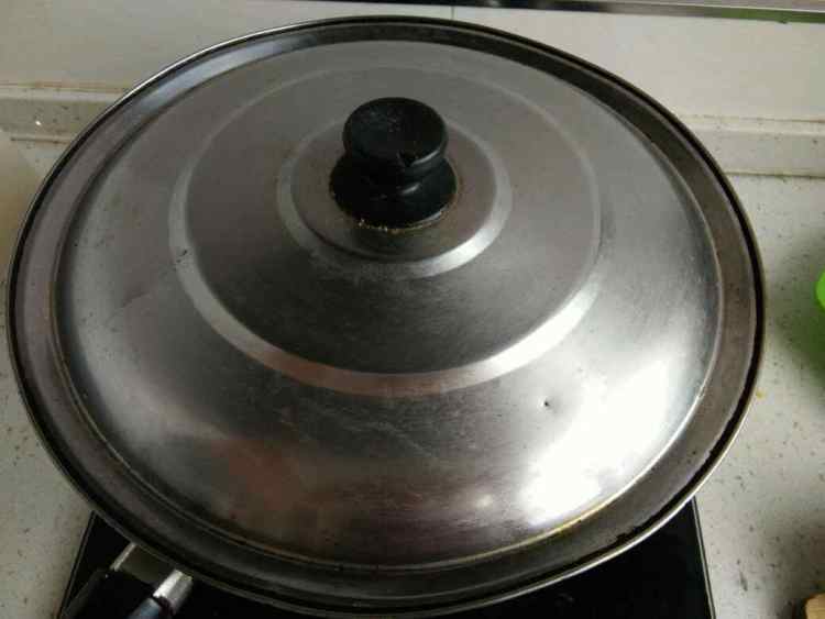 3、炒至半熟的时候放入适量的盐、葱、加入30g水盖锅5分钟。