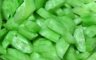 2、黄瓜清洗后去皮;切成段后放入容器内;放入适量的盐腌制,腌制后的黄瓜口感会更脆爽。