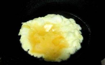 3、锅中放入适量的油,将打散的鸡蛋倒入炒熟后盛出;再放入适量的油,将腌制过的虾仁放入。