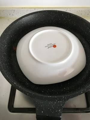 10、关火,用一个盘子盖住,按住盘子,反转平底锅。