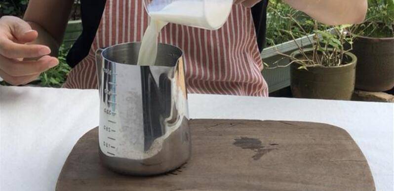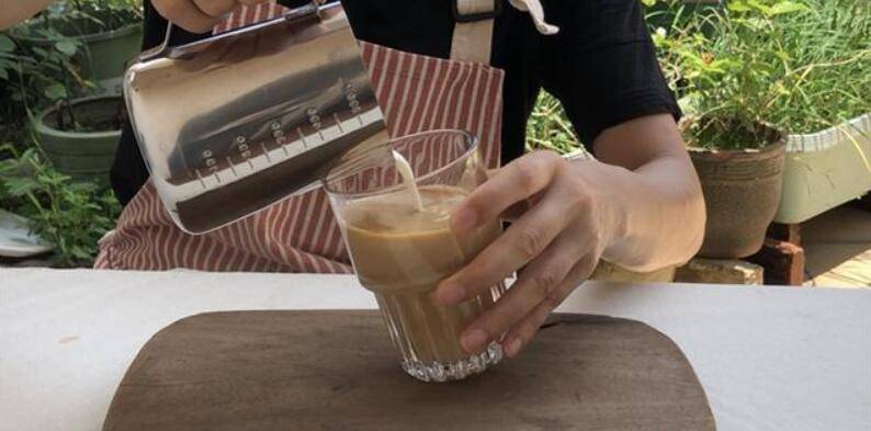 材料:细盐般的咖啡粉18克,纯牛奶160克、90度以上的热水。
