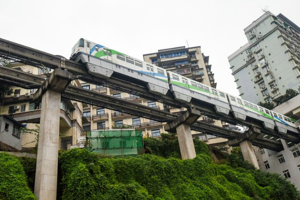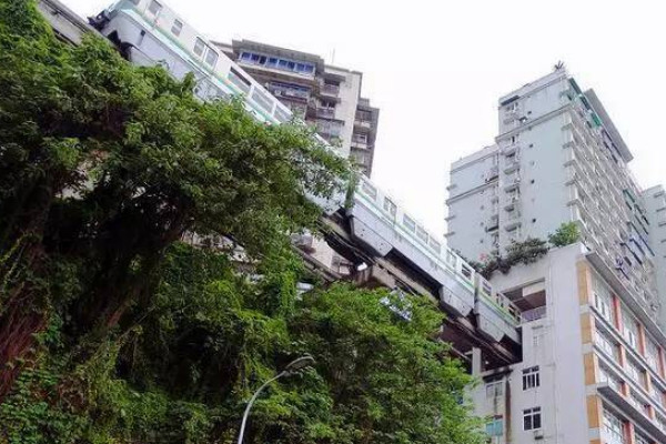 重庆轻轨2号线在1998年开始设计建造,2004年试运营,2006年正式运营,而且轻轨的运行速度较快,声音较小,只有60分贝,不会影响周围居民的生活和工作。