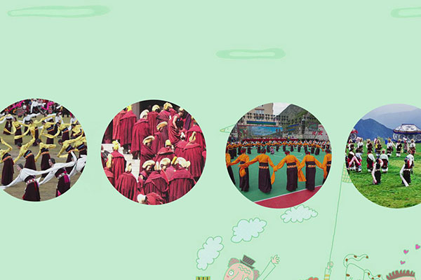 锅庄也称果卓、歌庄、卓等,是藏族的民间歌舞,常在节日或农闲的时候,由藏族男女围成圆圈,自右到左,边歌边跳。
