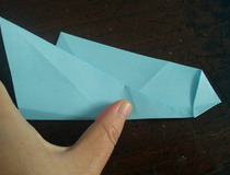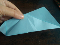 把上面的部分折到里边。然后把右边向左折。打开后,把角向左折。