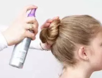 有必要时用发夹固定发髻。轻轻地在发髻和周边的头发上喷上定型啫喱,固定发型。