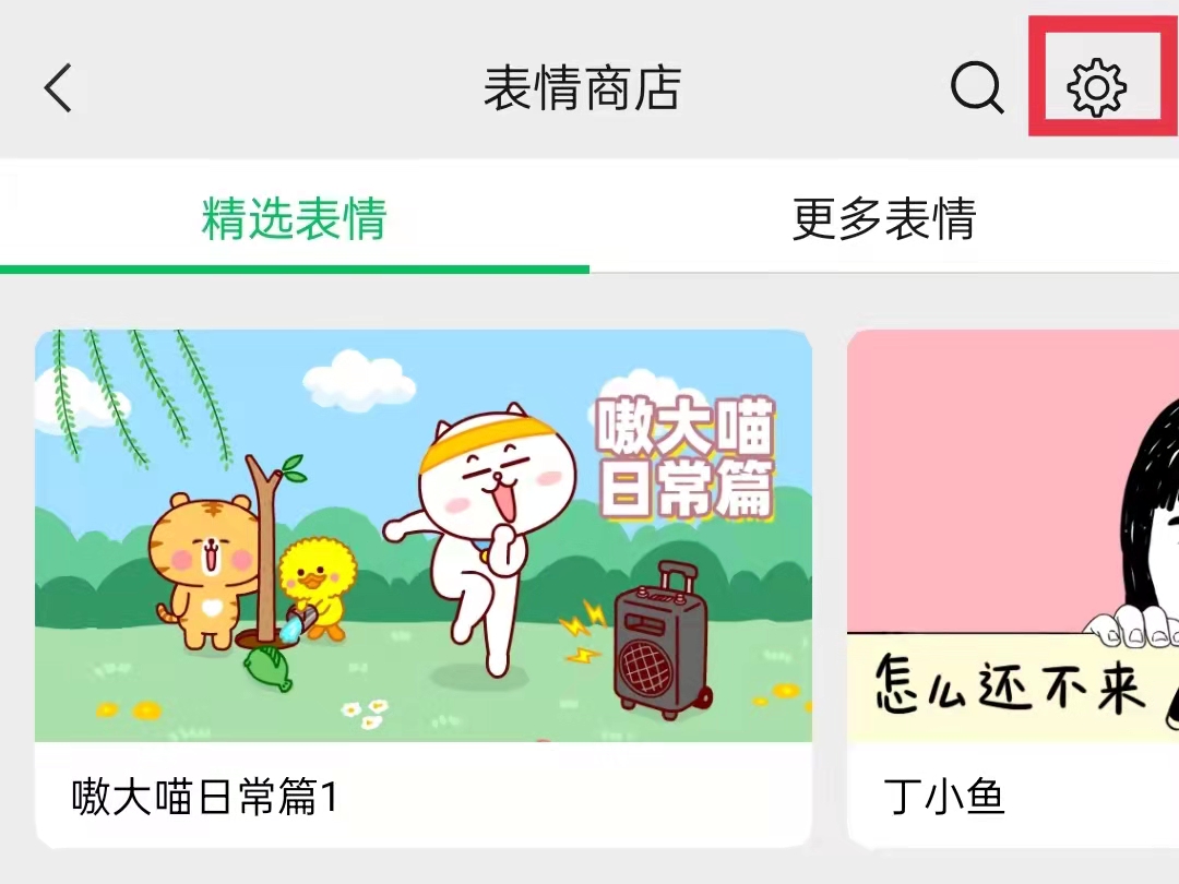 3.在表情商店中,点击右上角的设置图标。
