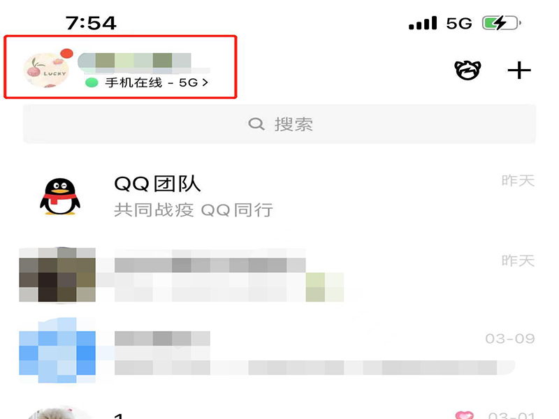 1、打开qq,点击左上角头像,进入qq工具栏页面。