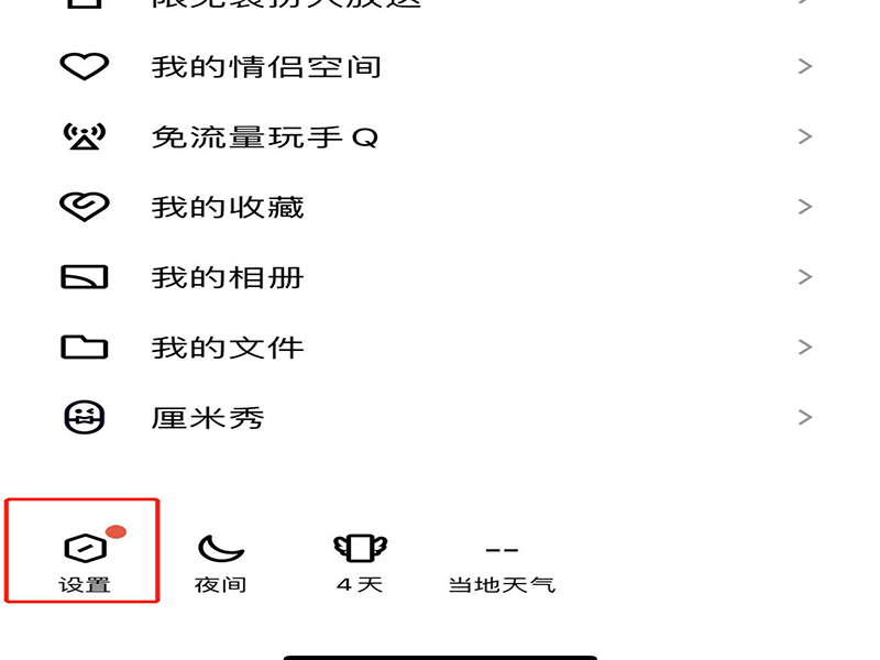 2、在qq工具栏页面上,点击“设置”,进入设置页面。