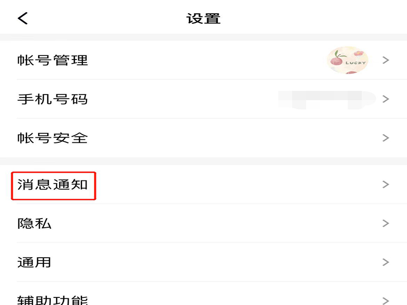 3、在设置页面上,点击“消息通知”,进入消息通知页面。