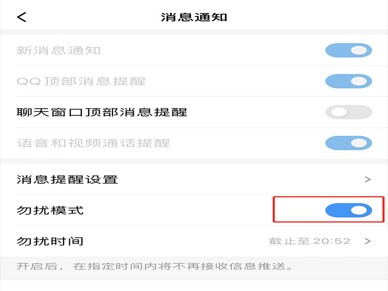 qq电话半夜会自己挂是因为设置了勿扰模式而造成的,可选择关闭进行解决,具体操作如下: