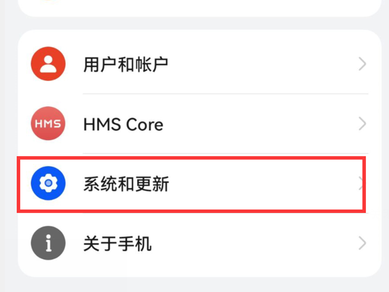 1、打开手机的设置,点击“系统和更新”按钮,进入系统设置中。