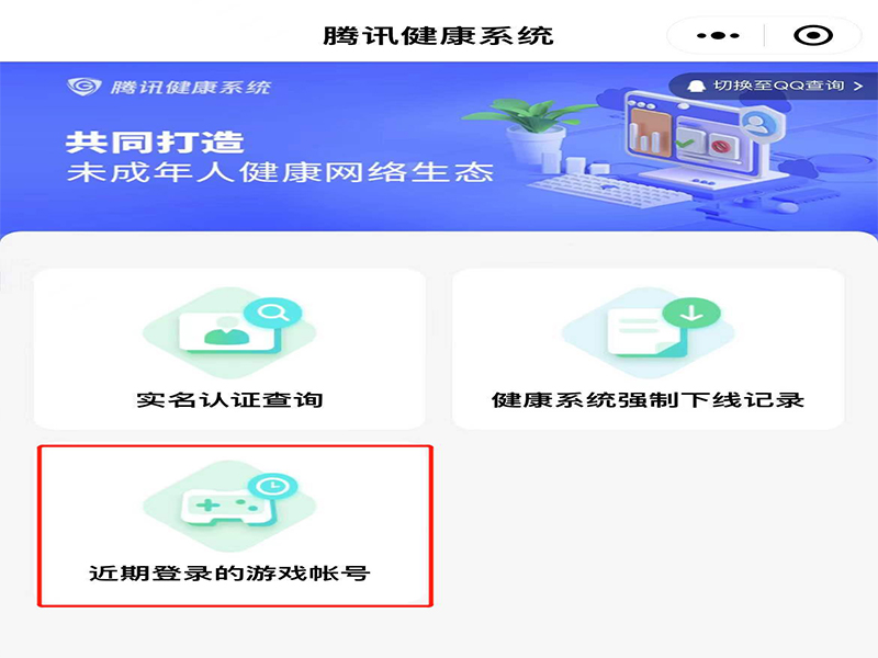 2、在腾讯健康管理系统小程序页面上,点击“近期登录的游戏账号”,进入身份验证页面。