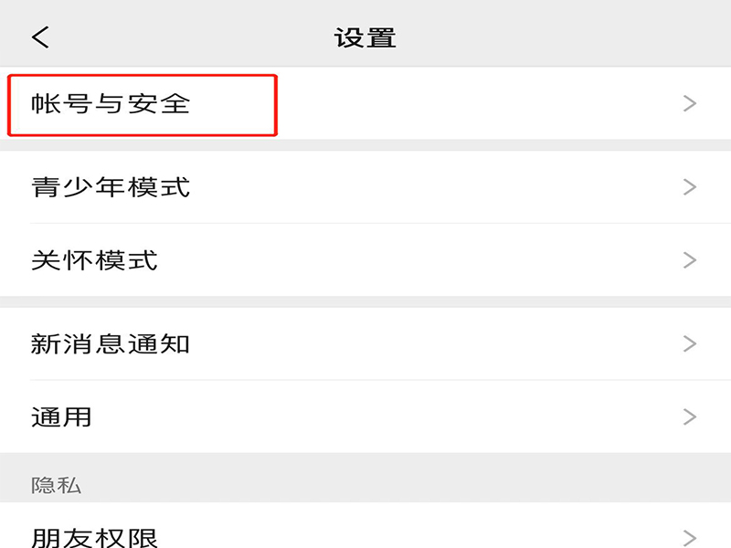 2、在设置页面上,点击“账号与安全”,进入账号与安全页面。